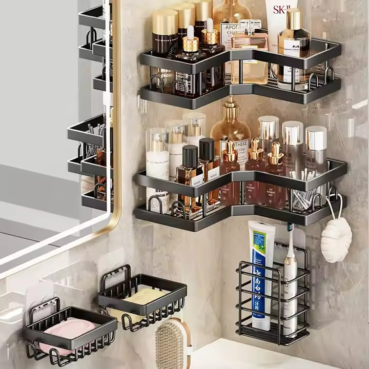 🔹 Material resistente al agua – Ideal para ambientes húmedos.🔹 Diseño moderno y minimalista – Se adapta a cualquier estilo de baño.🔹 Fácil instalación – ¡Sin necesidad de taladrar!🔹 Espacio optimizado – Usa esquinas y paredes para maximizar el orden.